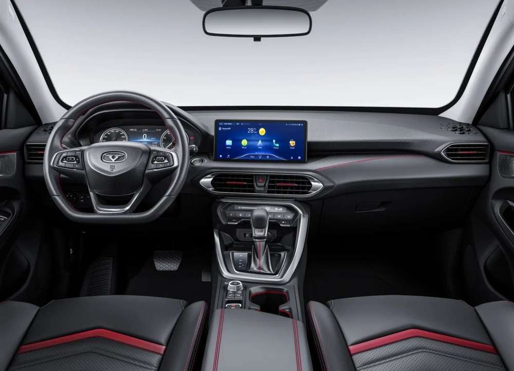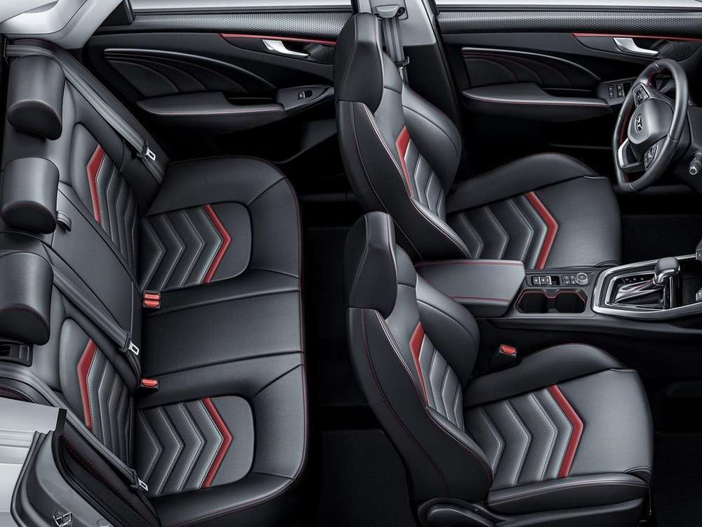 | Передний бампер уникального дизайна с красными акцентами |