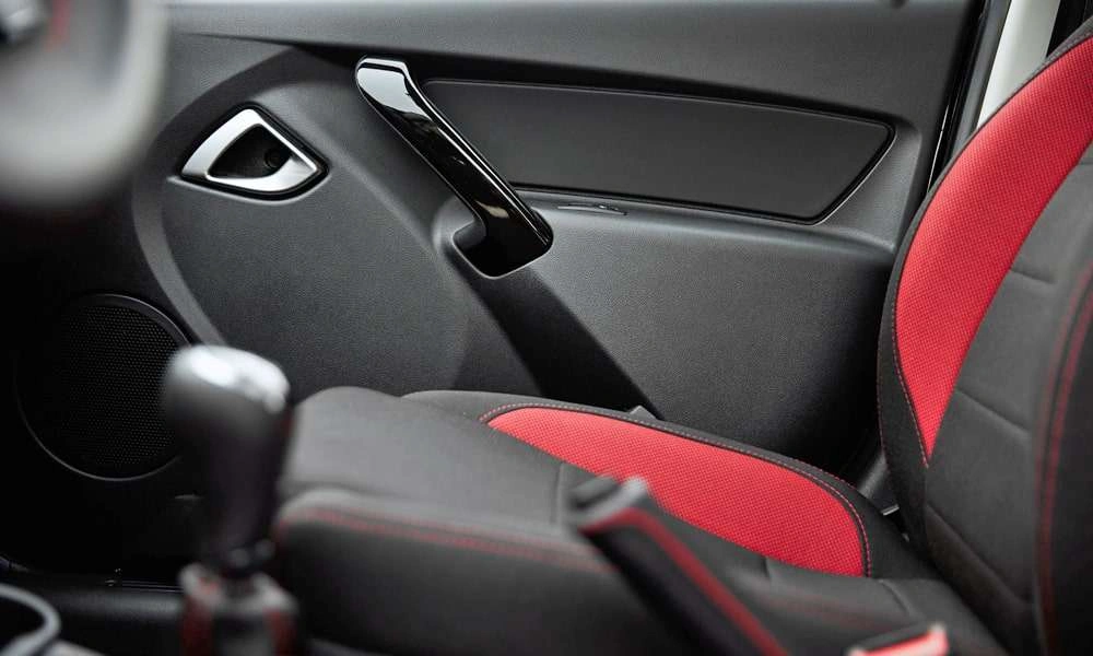 | Обивка сидений ткань. Цвет черный с красными элементами |